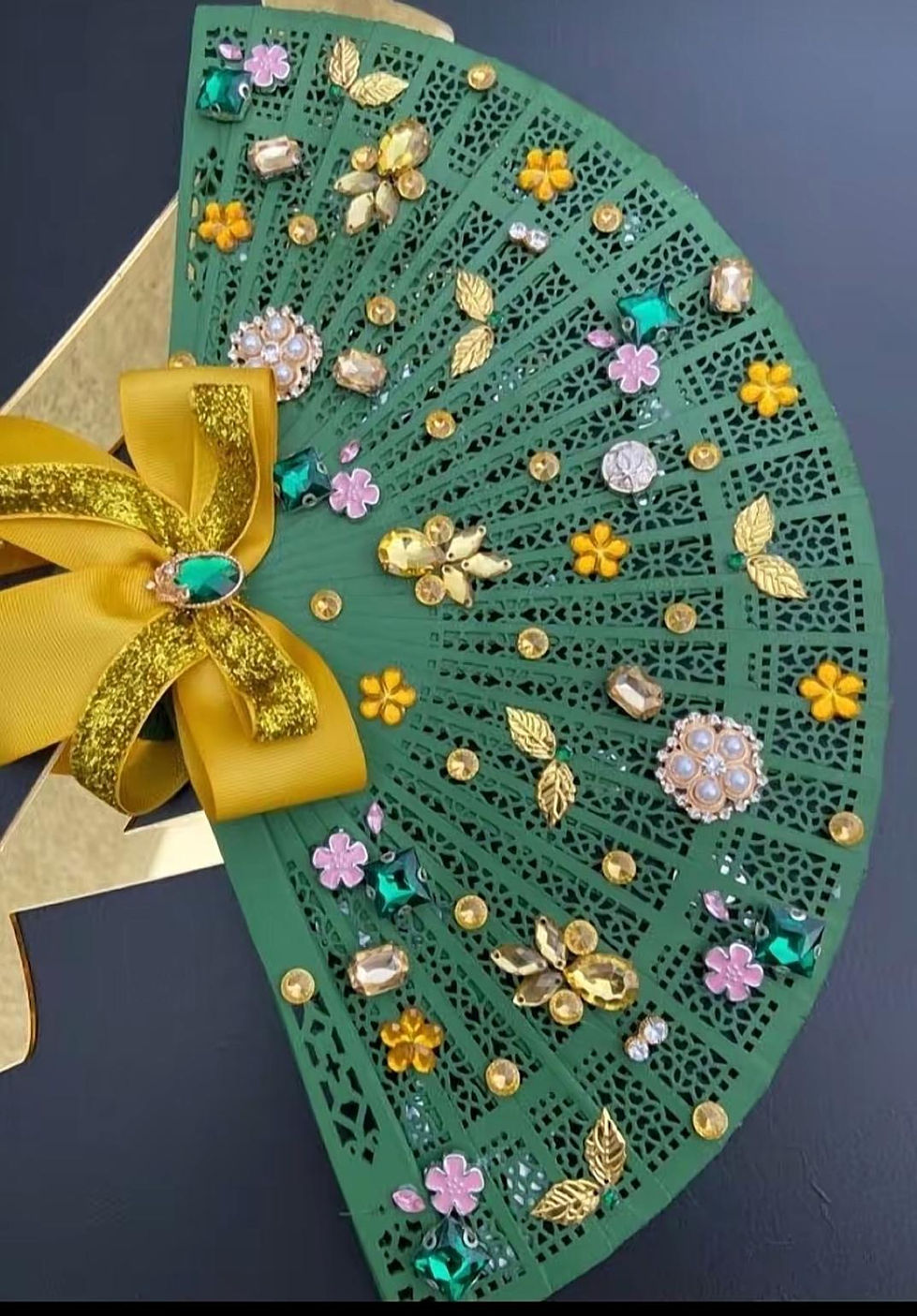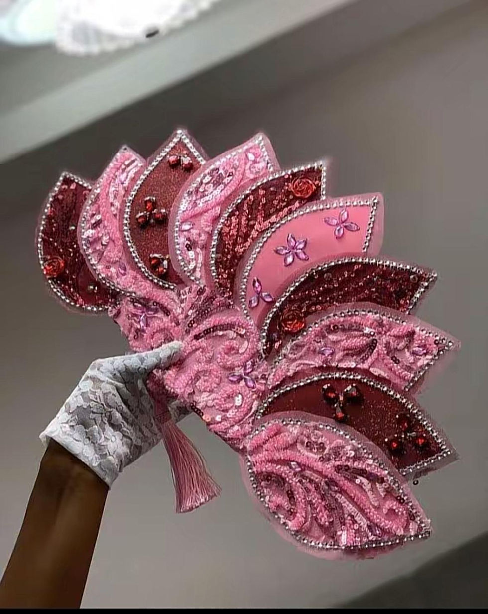 Each piece is handcrafted with care and designed to complement your dress, theme, and personal style. Whether adorned with lace, beads, feathers, or crystals, every fan reflects elegance, culture, and individuality. The perfect accessory made to elevate your special day.